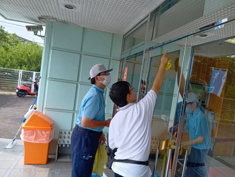 支援学校からは、本格的なビルクリーニングの体験に来られており、一人ひとりが持つ能力と、得意なところを伸ばせるようサポートしています。